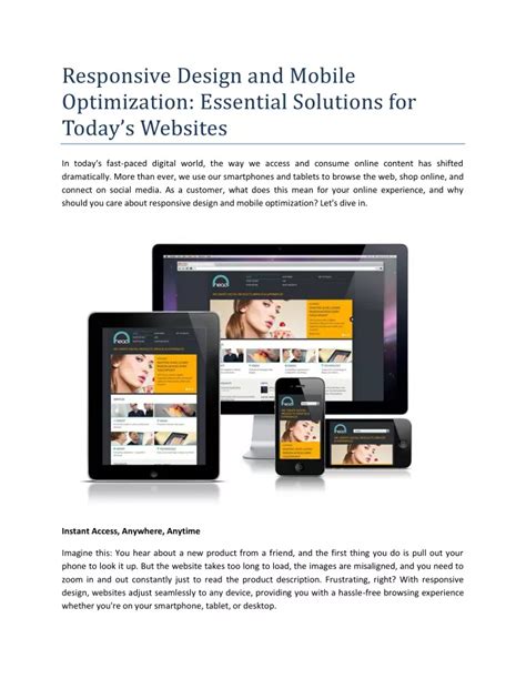 Responsive Mobile Optimization . Web by implementing responsive design, optimizing page load speed, and prioritizing mobile content, website owners can ensure better. Discover key elements and techniques of mobile optimization, such as responsive design, performance optimization, and progressive web apps.